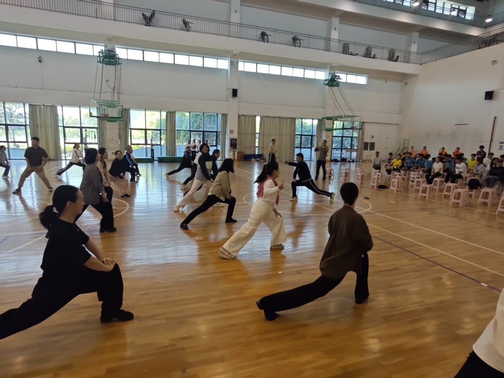 活动在体育学院师生专业基本功展示中拉开帷幕,接着,王鑫明书记带领大家进行运动前的热身。活动的主体板块为师生趣味游艺项目:乒乓球托球接力赛强化团队协作、飞镖精准赛寓意为民服务靶心不偏、障碍跨越赛展现攻坚克难精神、农耕体验赛模拟春种秋收,深化乡村振兴理解、拔河对抗赛彰显集体凝聚力……