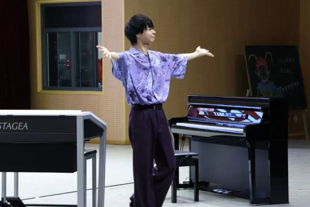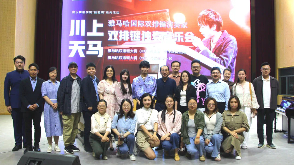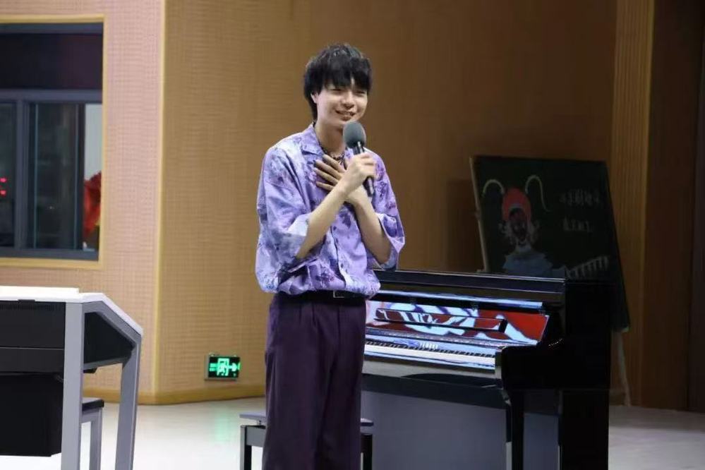 音乐会上,川上天马以双排键模拟交响乐团的恢弘效果,原创曲目与经典改编作品交织,带领观众穿梭于古典与现代的音乐时空。值得一提的是,他为此次中国之行特别演绎了《小城夏天》《孤勇者》等流行曲目,熟悉的旋律引发全场共鸣,师生们报以热烈掌声与欢呼。