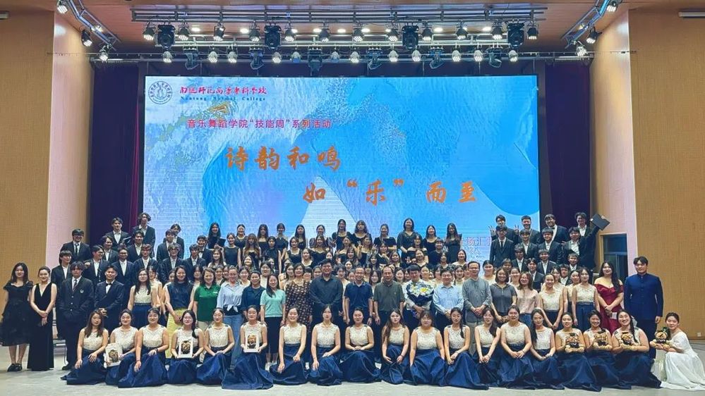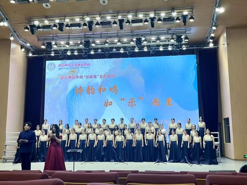 2025年6月12日16时,我院技能周系列活动之“诗韵和鸣,如乐而至”合唱团艺术实践专场音乐会于图文信息楼大报告厅璀璨启幕。此次活动由黄忠院长精心总策划,齐斌、任奕弛老师担任专业合唱指导,声乐课程组全力统筹协调。合唱团同学们为大家带来一场震撼心灵的视听盛宴。学校党委委员、副校长张松祥,学院全体师生观摩了此次活动。