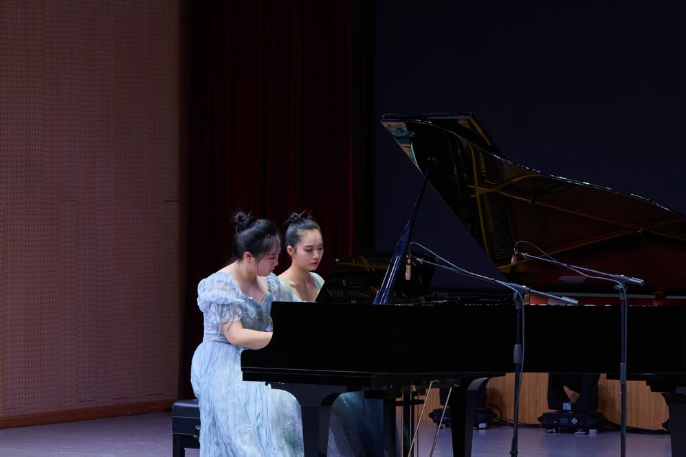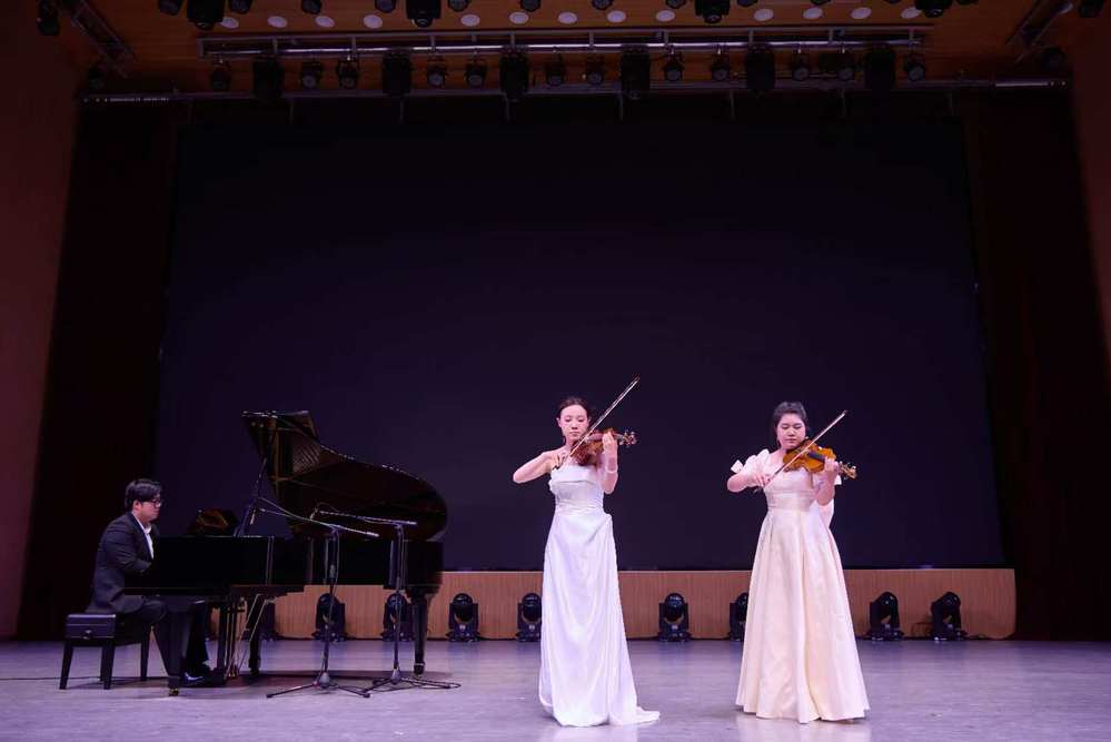 钢琴四手联弹《莫扎特C大调奏鸣曲k521》节奏灵动,二胡重奏《阿里山的姑娘》韵味悠长,弹拨乐小合奏《菊次郎的夏天》、长笛独奏《春天来了》等也各展风采,展现器乐演奏功底。