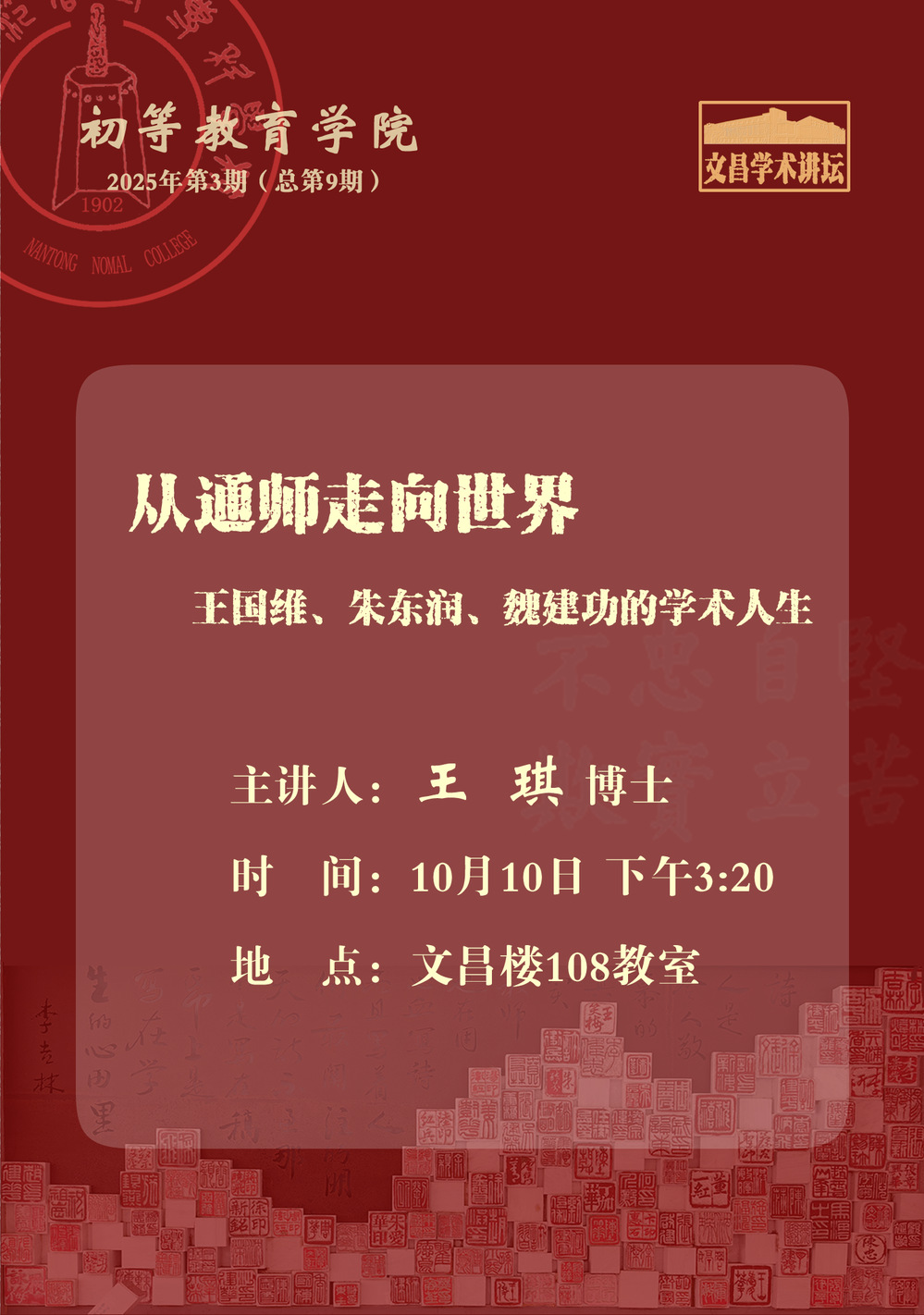 初等教育学院文昌讲坛:从通师走向世界——王国维、朱东润、魏建功的学术人生