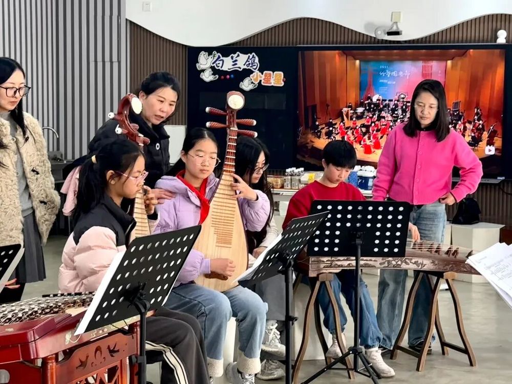 星湖小学民乐团作为学校美育工作的亮眼名片,其系统化的教学体系与丰富的艺术实践,为本次高水平的专业指导奠定了坚实基础。从《彩云追月》的意境营造到《三六》的韵味把握,乐团展现出的良好素养,正是该校长期深耕传统文化美育成果的集中体现。我院老师们的此次指导,恰如为这片肥沃的美育土壤注入了新的养分,旨在帮助小乐手们实现从“熟练演奏”到“懂得欣赏、善于表达”的升华。