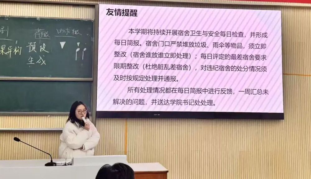 紧随其后召开的宿舍室长工作会议以“凝心聚力守安全,规范管理促和谐”为主题,明确新学期宿舍管理总体目标,为宿舍室长划定五大核心职责。会议要求,宿舍室长要当好信息传递员,及时、准确传达校院及公寓管理中心的各项通知要求,确保信息全覆盖;做好安全监督员,带头并督促室友严守宿舍安全规定,杜绝使用热得快、电煮锅等违规电器,不私拉乱接电线、不存放易燃易爆物品,熟悉消防器材使用方法,发现安全隐患或可疑人员第一时间上报;做好卫生管理员,制定并执行值日表,压实卫生责任,积极配合学校卫生检查并及时整改问题;做好矛盾调解员,关注室友关系,及时化解小矛盾、小摩擦,营造团结友爱的宿舍氛围;做好文化建设员,组织开展健康向上的宿舍文化活动,带领成员积极参与各类宿舍评比。会议着重强调了宿舍管理的硬性要求与考核标准,学校将开展宿舍卫生与安全每日检查并形成简报,宿舍门口严禁堆放杂物,最差宿舍限期整改,未解决问题每周汇总报送学院书记处。晚查寝签字工作作为室长安全管理职责的关键环节,必须做到不代签、不漏签、不迟签、不瞒报,如实记录归寝状态,遇晚归、夜不归宿等异常情况立即上报。同时明确,明火使用、高空抛物、代查寝等影响宿舍安全稳定的行为将被严肃处理,相关处分记入个人档案,切实筑牢宿舍安全管理红线。