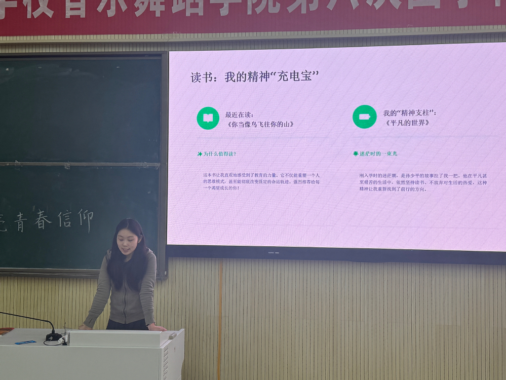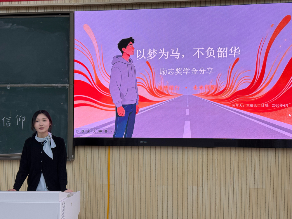为充分发挥优秀学生榜样示范作用,营造勤学善思、笃行奋进的校园氛围,4月22日中午12:30,我院在一阶教室举办励志奖学金获得者读书分享会。李思燏、王蕴儿、张雨欣三位获奖同学依次登台,结合自身成长经历、学习心得与读书感悟,为在场同学带来一场温暖而有力的青春分享。